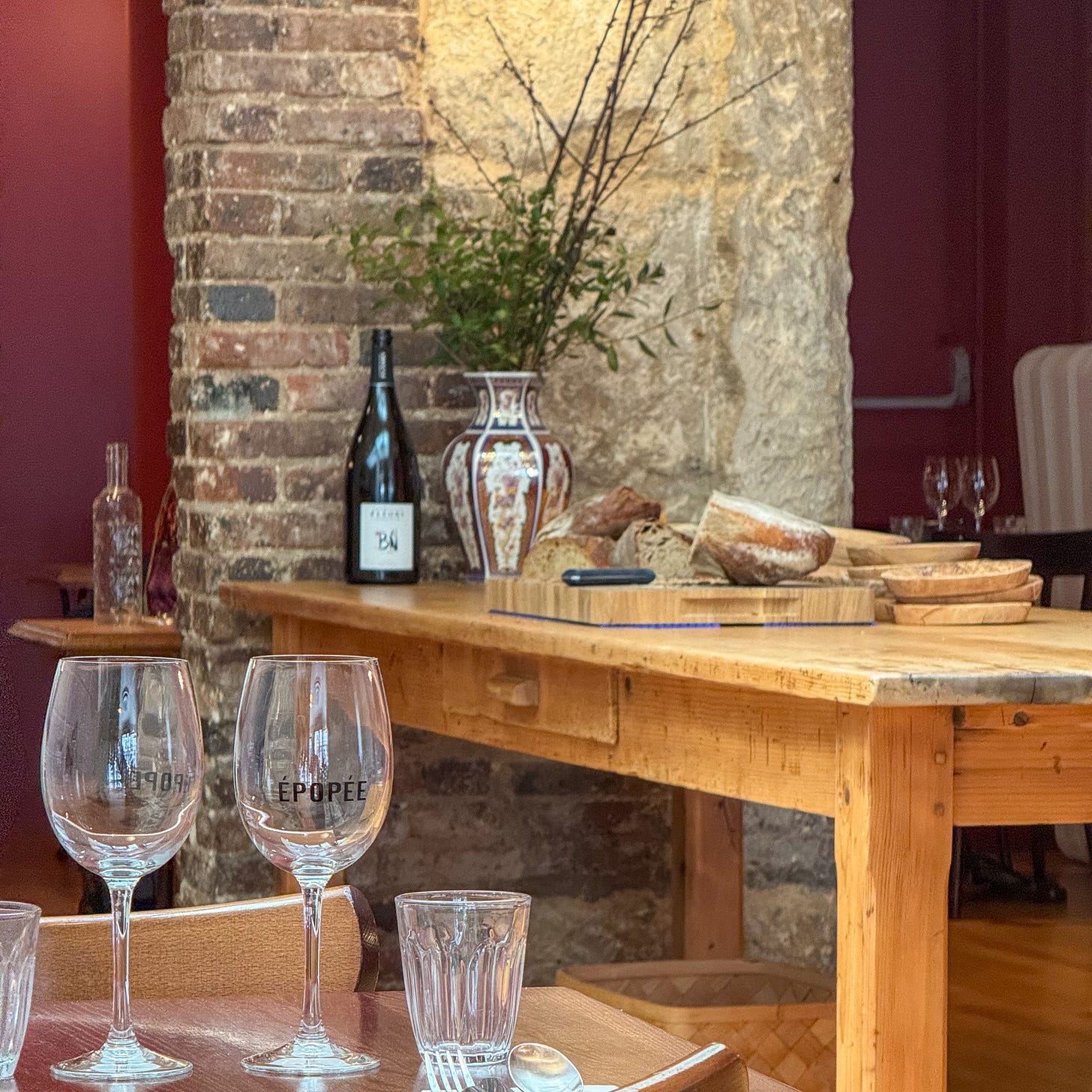 The vibe is what killed this restaurant for me. Épopée seems to be situating itself as a neighborhood place, with easy-going prices to draw a weekday lunch crowd. But it took them 2.5 hours to serve lunch at an uncomfortably glacial pace. There was no welcome, no warmth, barely an acknowledgment. Our dining room was full, with about five tables seated, and they struggled to keep up. The other two dining rooms sat empty.