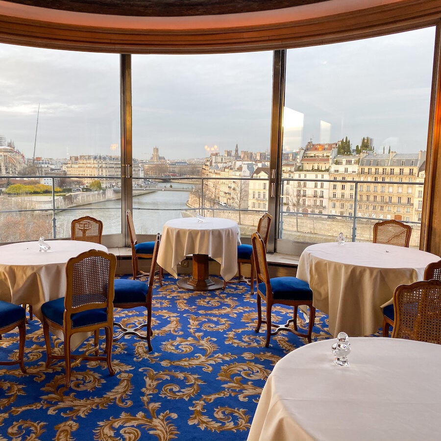 I’m very often asked to recommend restaurants for special occasions, and restaurants with a view. Here, the service is adorable. The wines are incredible, and (more than) fairly priced. The food feels special, and deserves more than one Michelin star. And the view is priceless, the best in Paris.
