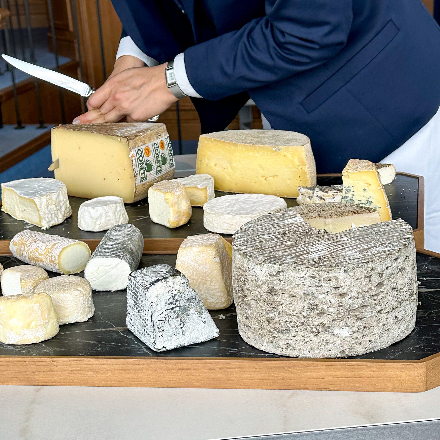 We declined the cheese trolley this time around, but here’s a photo from the neighboring table: