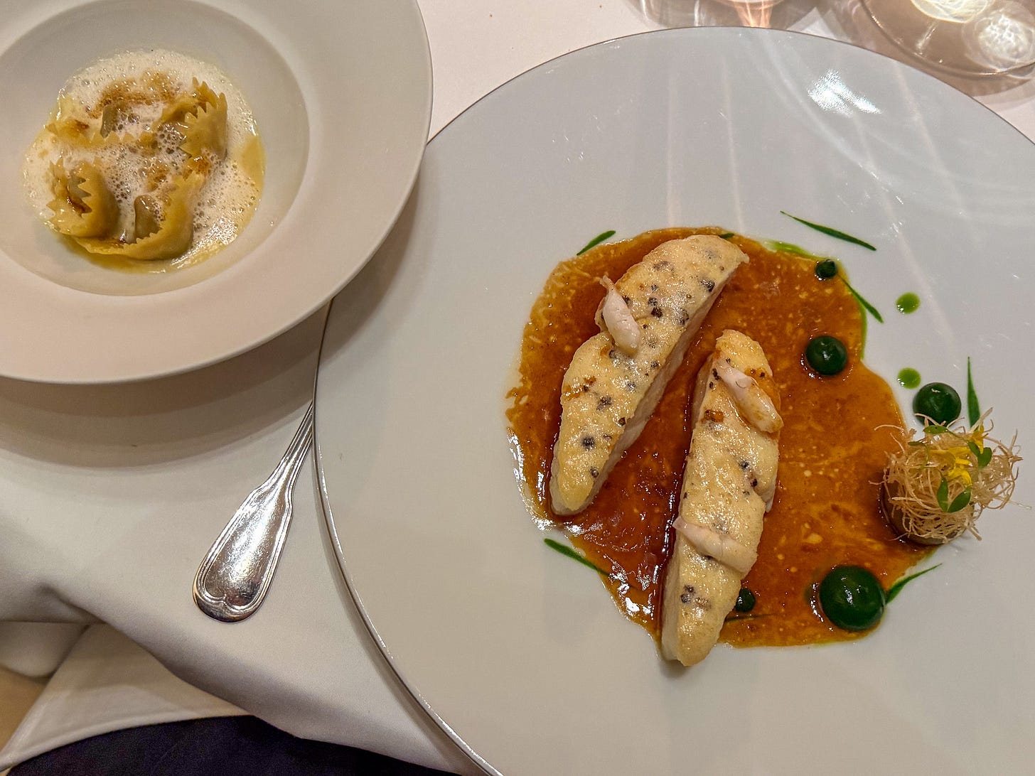 I misinterpreted the menu and ordered both fish and meat courses - a costly mistake that our server didn't correct. Our “unnecessary” meat course was priced at 380€ for two people.