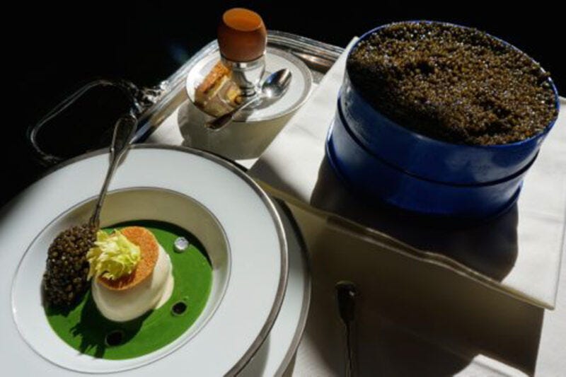 great pleasure reading about a meal I'd never could afford have and feel Ok about it !