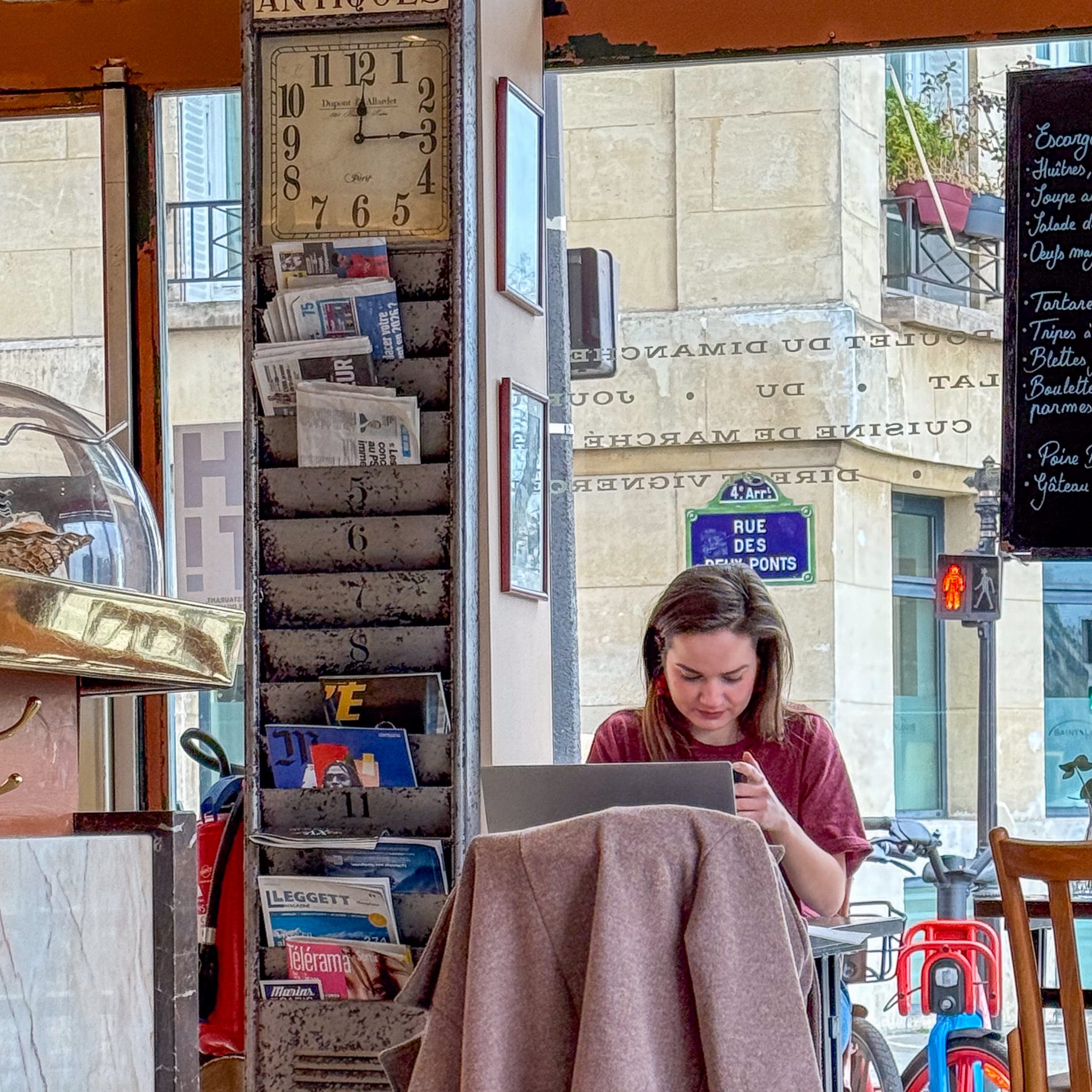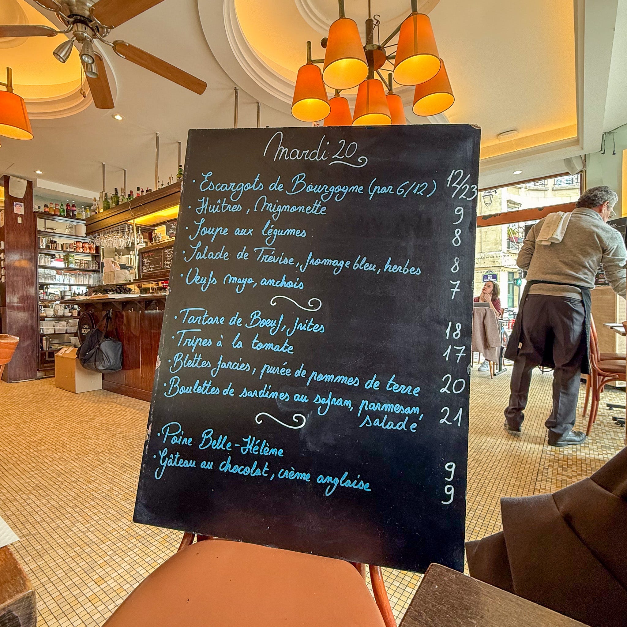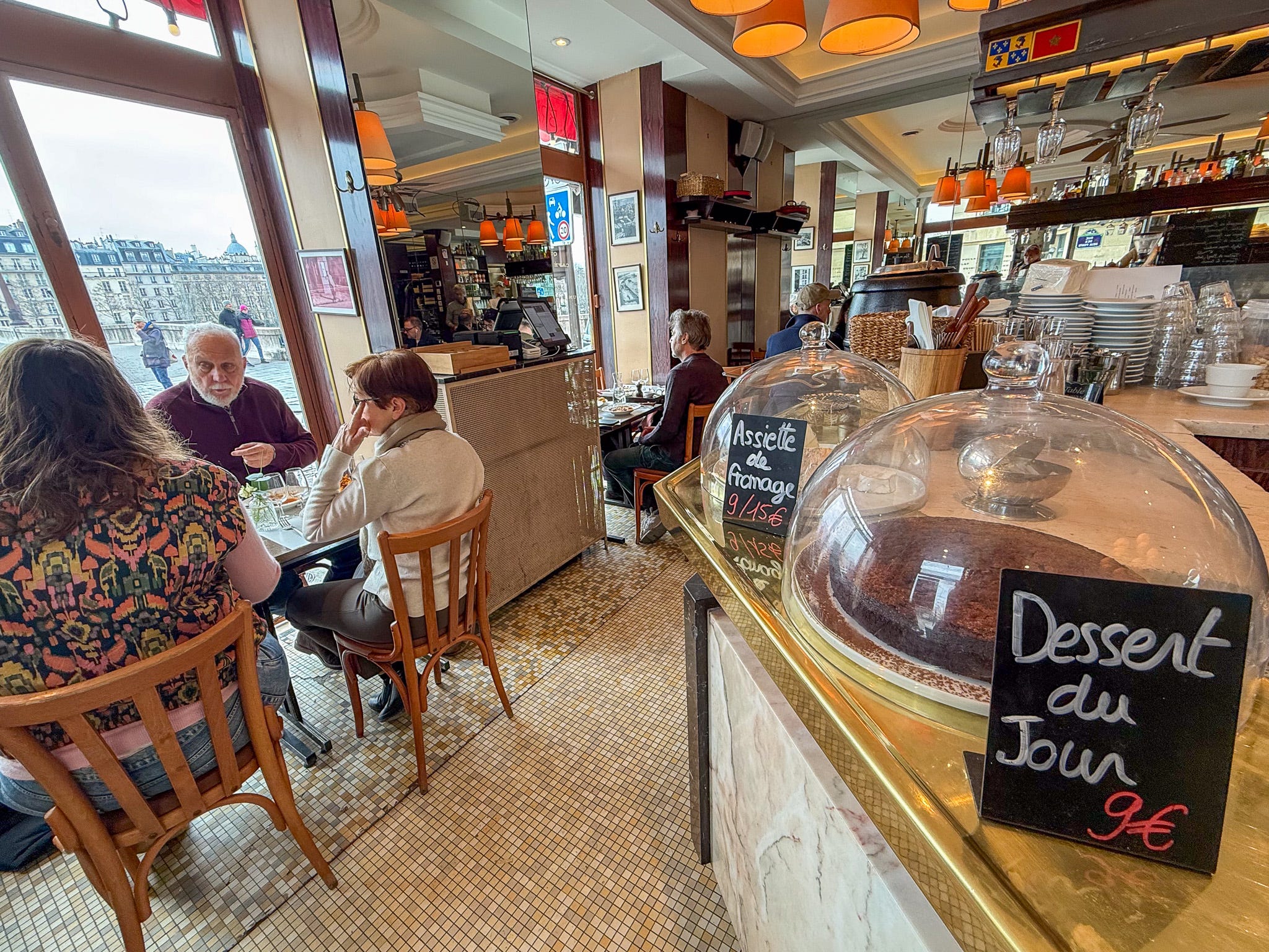 This is an incomplete report since I haven’t yet been at night. But I wanted to tell you right away about this wonderful place where you can soak up Old Paris vibes in the smack dab center of the city. The food is honest and delicious and affordable. It has all of the appeal of Le Cornichon but with the added bonus of the Seine right outside the door. They’re open every day, and you can order snacks (cheese, Cantabrian anchovies, good olives) all afternoon long. A great option after visiting Notre-Dame or Shakespeare & Company, or before getting your ice cream fix at Berthillon.